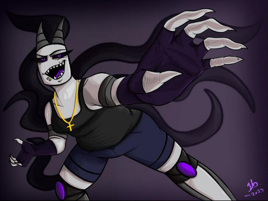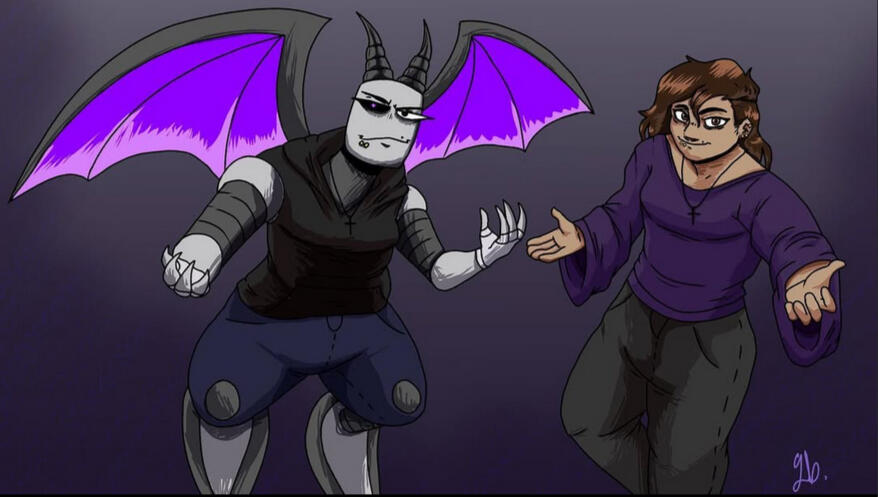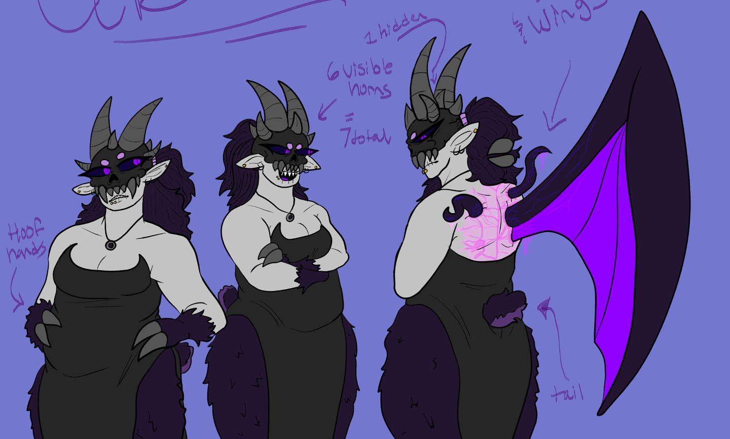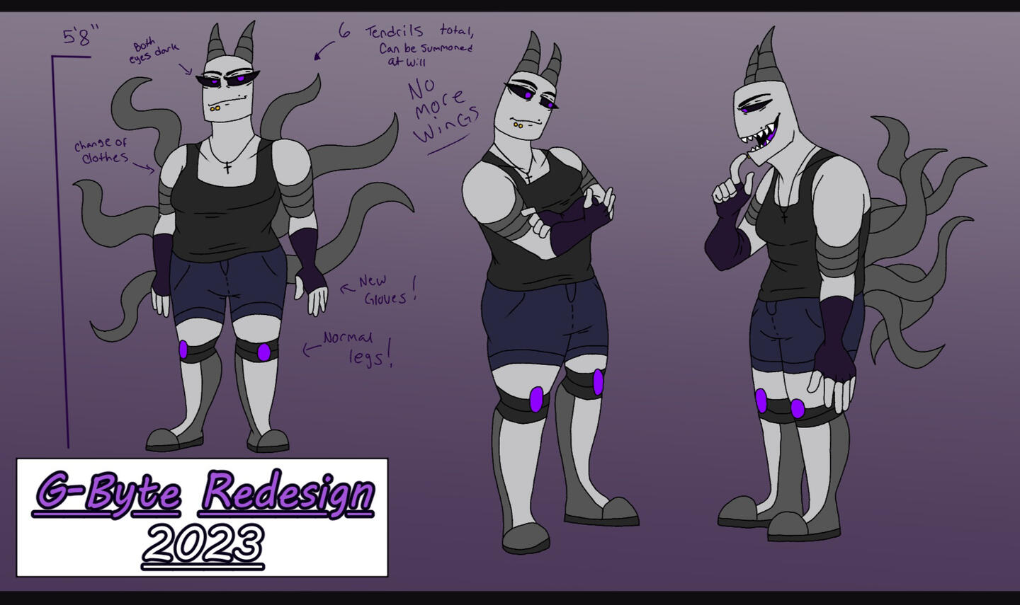 Back in 2020 I created Gbyte to be a robot character to help me navigate and promote my work online. After a few physical changes, I began to use her character to also help me draw art and concepts when I had gone through emotional moments and occasionally drew her design to become more evil and scary. Those drawing were what I personally represented my mental health with, however this also caused me to add a backstory as to why she appeared that way. From a regular robot, she became an organic robot alien species. Her family escaped her home planet to avoid a virus that corrupted civilization, causing the infected to lash out and change physical features. Gbyte has been able to hide it and live normally on earth with friends and family, but still occasionally had moments where she was not entirely ok. As I myself had gone through the healing process of my mental health, So did Gbyte. In 2023, her design changed from two separate versions of the same alien robot, to one singular alien design. In real life, she represented my growth and acceptance of my mental well-being, but her lore had changed completely to being just a regular alien who came to earth. No corruption, just good vibes. On Halloween of 2023, I came up with a fun design for my profile picture and played around with the idea of Gbyte being a different being of sorts, like the grim reaper or a demon. Thus, the creation of GBITE was brought to life! I had always wanted an overpowered character, and my younger sibling and I bonded over the interaction our characters had and collaborated on a story to bring the final concept together. The human versions of our characters were once two humans who were caught in the path of a powerful being in search of a new host. This being was the ruler of the underworld, whose name is unknown, but the ruler appeared before them as a giant monster of sludge, who melted and destroyed the bodies of their host after a certain time due to the unstable pressure and force of it all. However, this time the host had infected two bodies instead of one, thus balancing the power between the two. Gbite became the new ruler of the underworld, whereas their sibling became the prince, next in line to take over. Gbite is normally about 60ft tall, while Ebite is still their human size. Both siblings are able to morph their bodies to use to their advantage in fights or intimidation. They both have wings and tendrils that appear at will, and magic that makes them nearly unstoppable. They are also able to go back to earth and live amongst humans using the amulets they wear around their neck, that repress their forms to last for months when activated. The most recent designs now have hair and different features, some argue resembling dragons! Regardless, the story remains the same. GBite went from a simple robot mascot, to a super powerful character my sibling and I created just for fun.